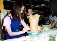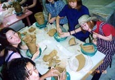 課外授業 < 自作花器をつくろう > ( 平成11年 7月 2日 ) 皆さんの作品と制作風景の報告書です ![]() たのしそうですね!