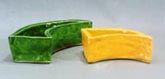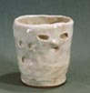 作品の赤、黄、青、緑は、上絵付けしたものです。